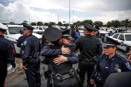 Pearland mourns fallen officer as going 'a step above' Pearland police officer Zach Pessante embraces another officer after a funeral service for fallen Pearland police officer Endy Ekpanya at Grace ...