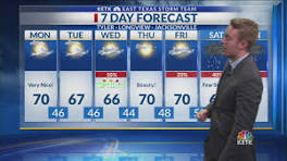 | Monday's Weather: A mostly sunny day with highs in the upper 60s EAST TEXAS (KLTV) - Good morning, East Texas! Here's the weather where you live: A mostly sunny day today with temperatures climbing into the ...