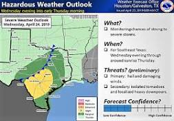 NWS: Showers in the forecast for Houston with stormy weather possibly hitting Wednesday NWS: Showers in the forecast for Houston with stormy weather possibly .... The potential for severe weather is marginal for Southeast Texas, with ...