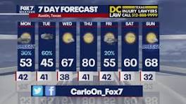 Evening weather forecast for March 6, 2022 - FOX 7 Austin Rain and cooler weather will start the week off, and then Wednesday a spike in temperatures will bring the high to 80 degrees.