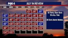 Dallas weather: 26 of 31 days in July had hotter than normal temperatures As we turn the calendar to August, we are taking a look back at the weather in the scorching hot month of July in North Texas. 26 of the 31 days ...
