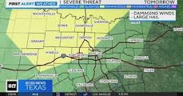 Warm weather continues with storms late Tuesday through Wednesday - CBS Texas We've issued a Weather Alert for Tuesday evening. Strong to severe storms look possible for parts of North Texas, with large hail and damaging ...