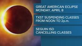 Texas State University joins growing list of schools pausing classes during solar eclipse The university is right in the path of totality. Author: kens5.com. Published: 6:24 AM CDT March 20, 2024. Updated: ...